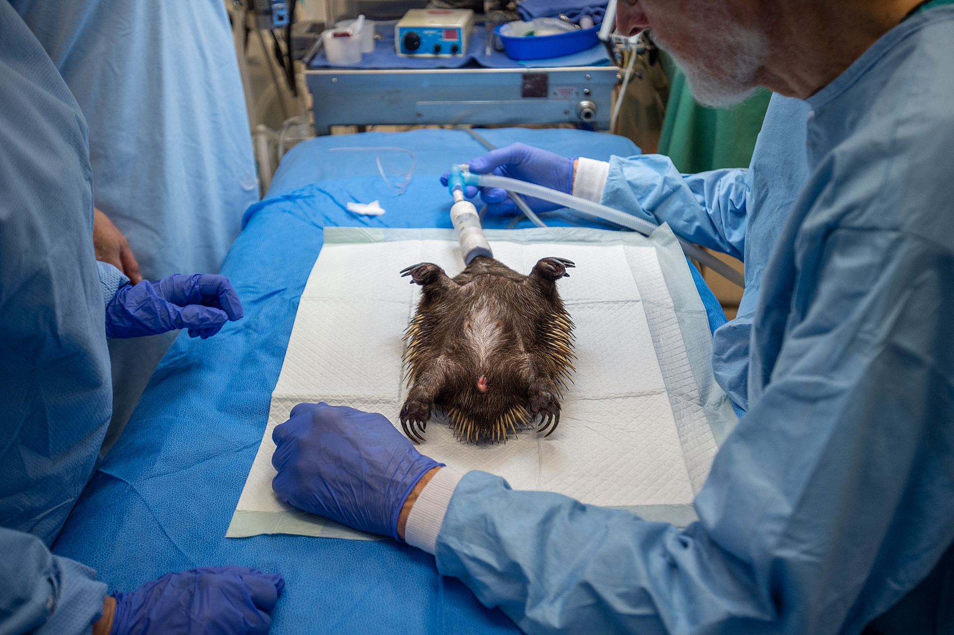 An injured echidna is sedated and treated for injuries at Southern Cross Wildlife Care.