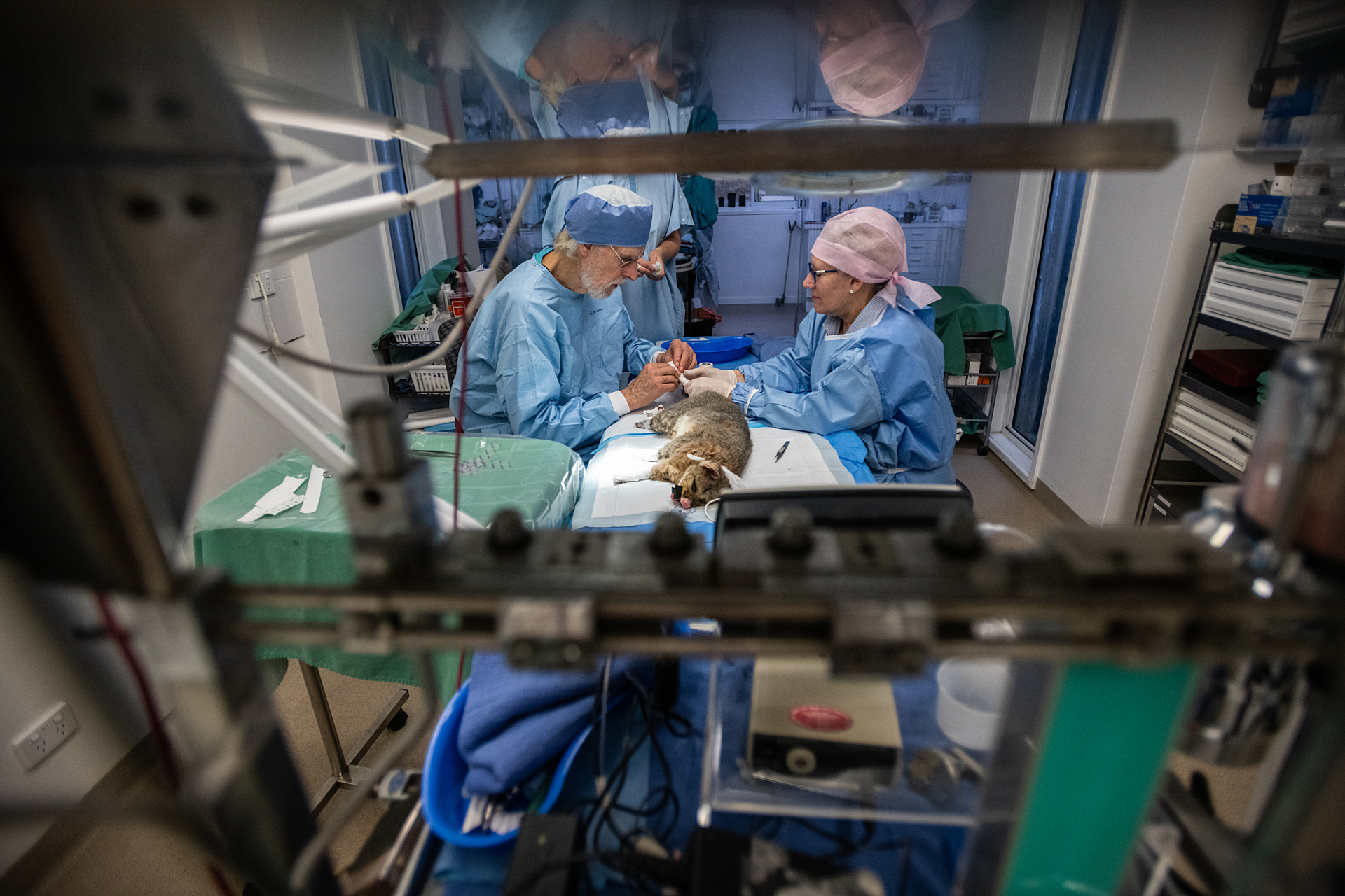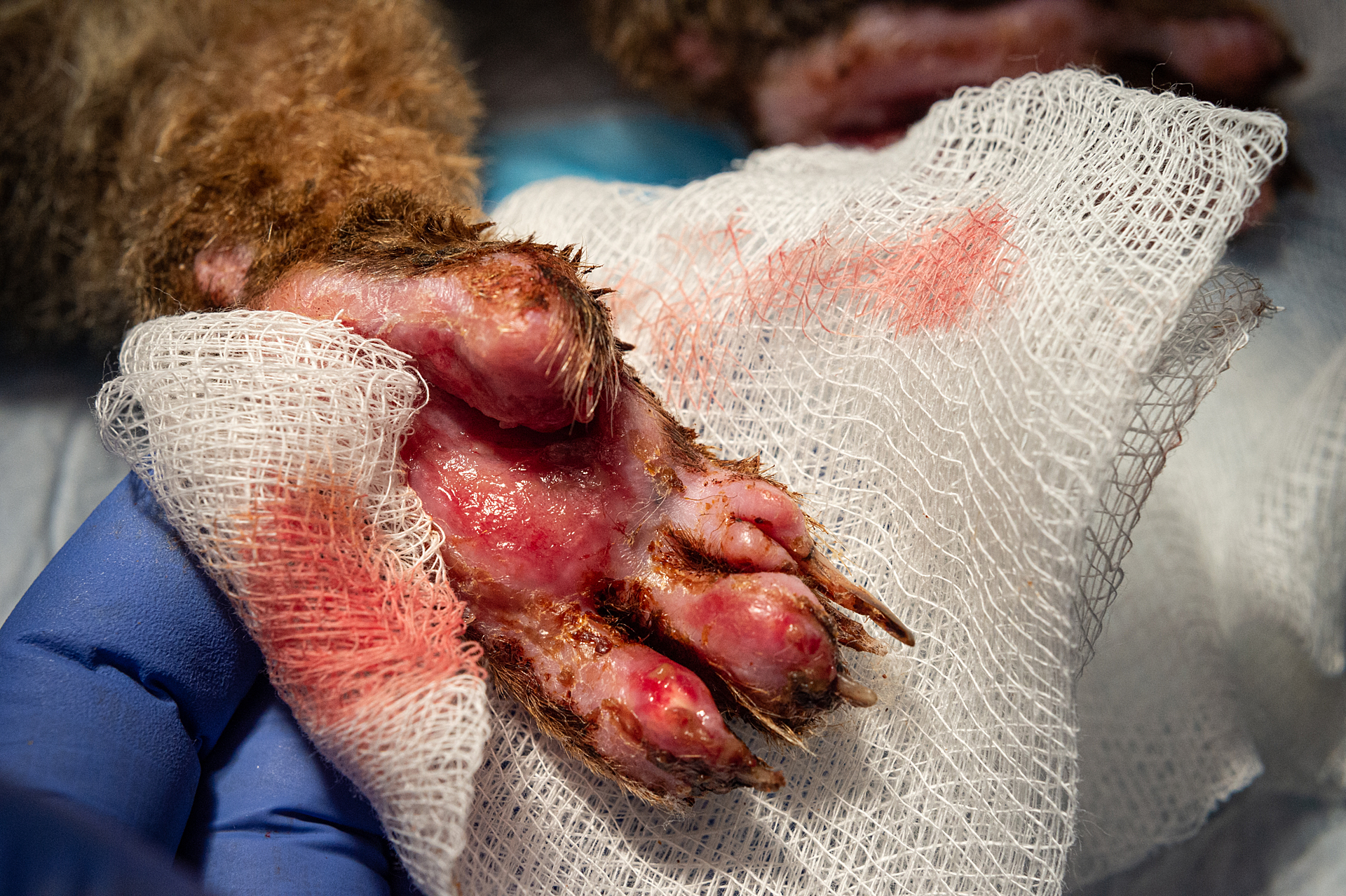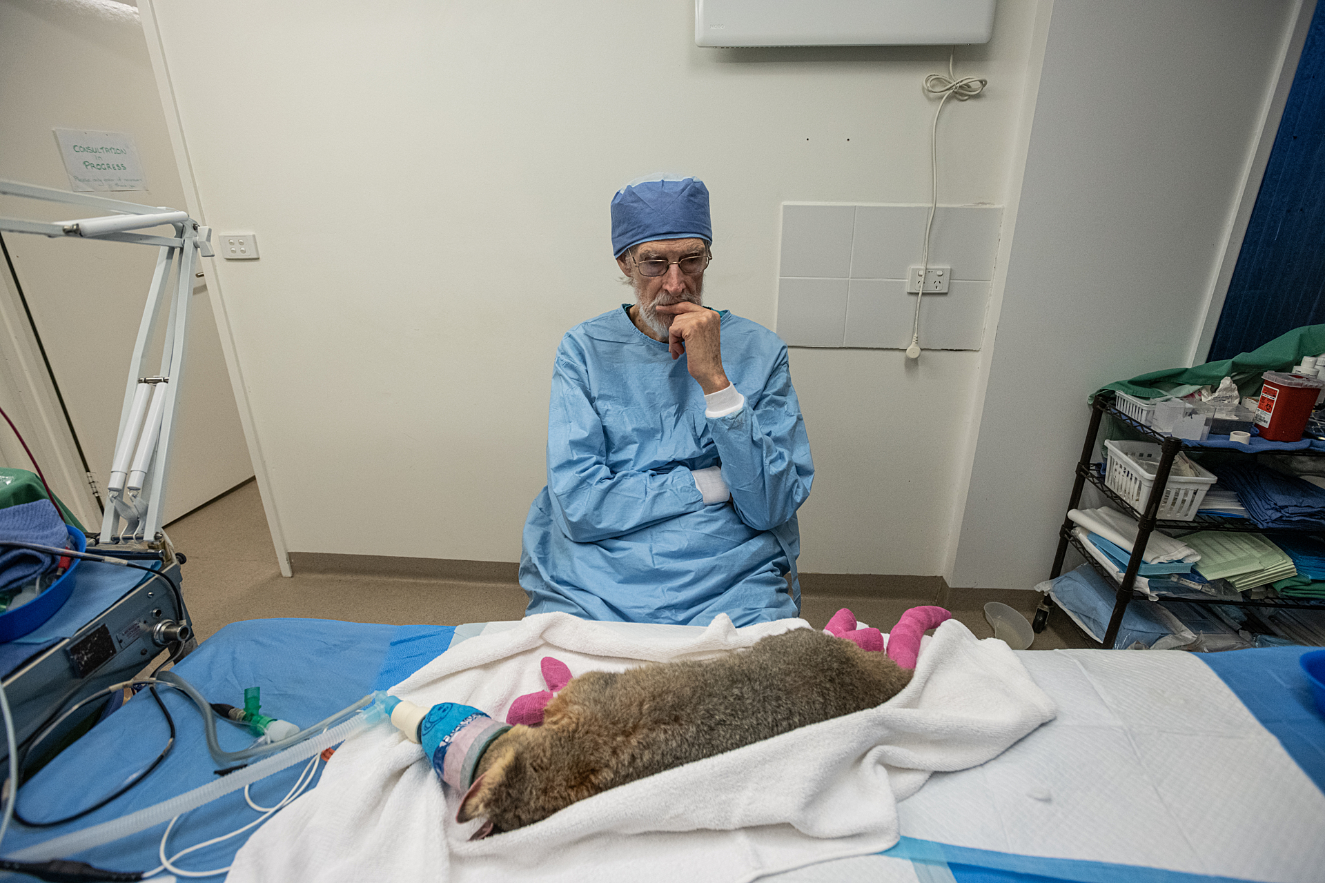 Dr. Howard Ralph of Southern Cross Wildlife Care treats an injured possum under anesthetic. His dressings are changed every 2-3 days. He is recovering well from severe burns to his tail and all four paws.